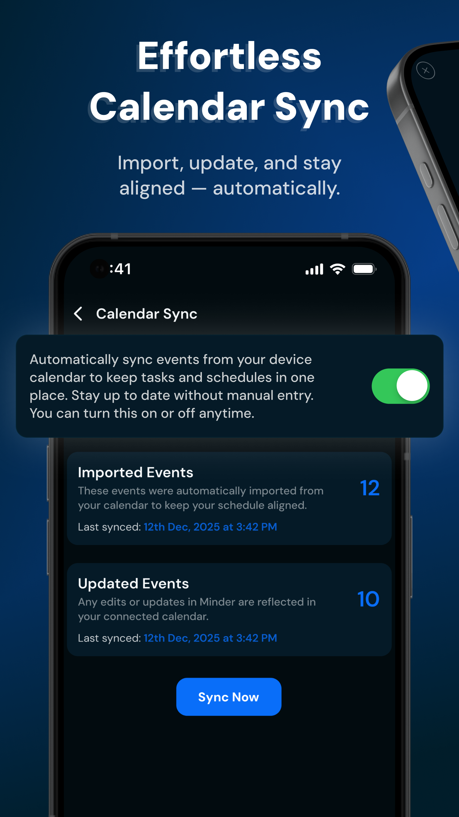 Effortless Calendar Sync Import, update, and stay aligned automatically. FocusMinder syncs with your device calendar to keep all your tasks and schedules in one place without manual entry.