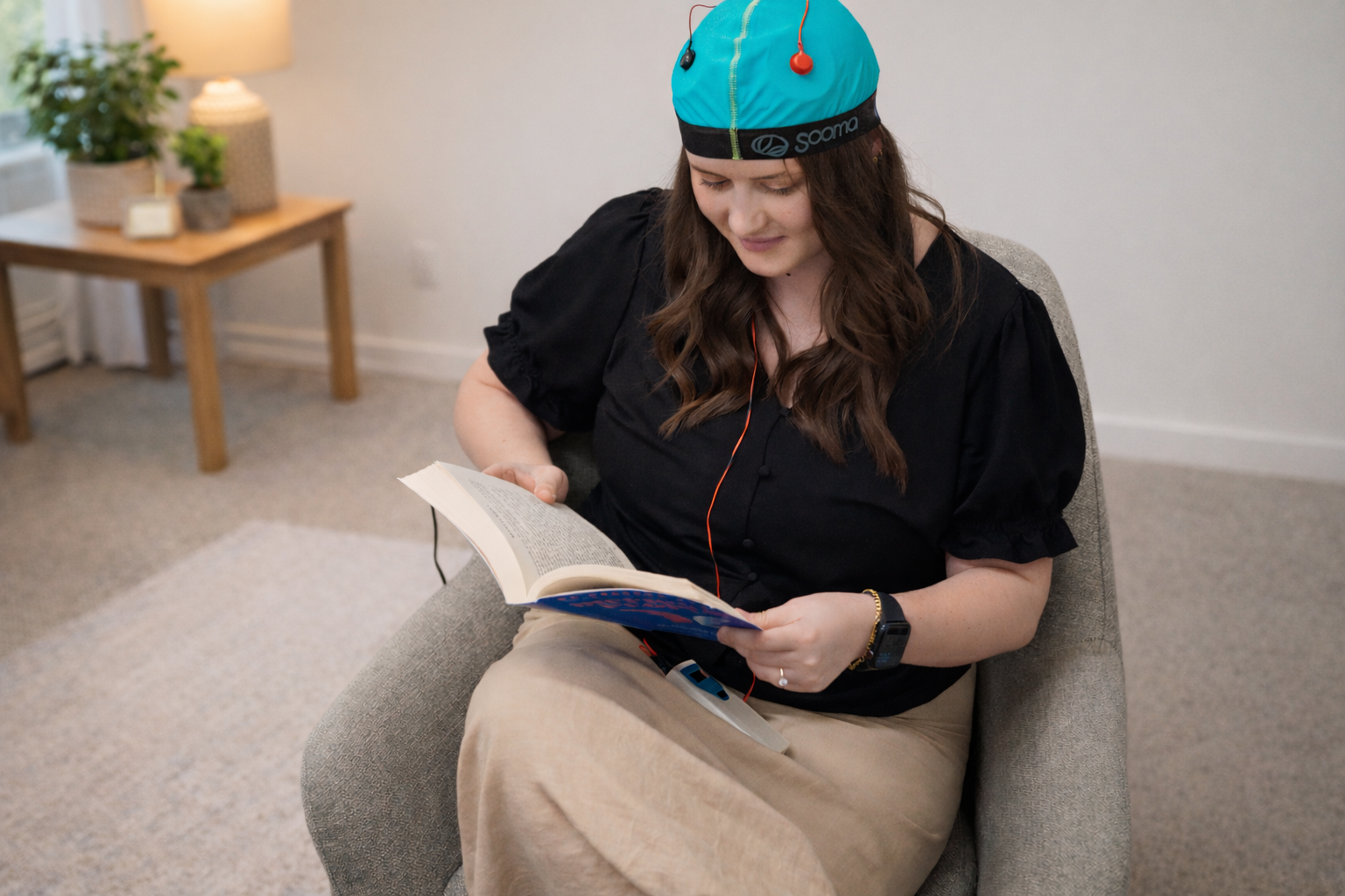 Because the device is portable, tDCS treatments can be done almost anywhere. You will wear a special cap with two electrodes embedded in it, which is attached to a small stimulation unit. The therapy uses a very weak current and during your treatment we encourage you to do an activity that is mentally challenging. Some patients like to read a book / newspaper, do sudoku or crossword puzzles. These sorts of activities increase treatment efficacy and can also make the time pass more quickly.